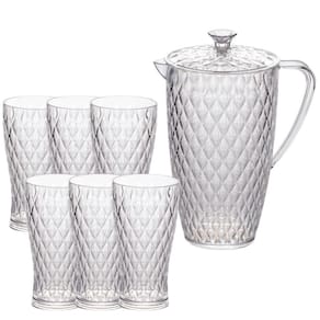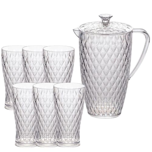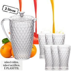 Kit de jarra com taças de água em poliestireno (idêntico ao acrílico), contendo 7 peças, sendo:
