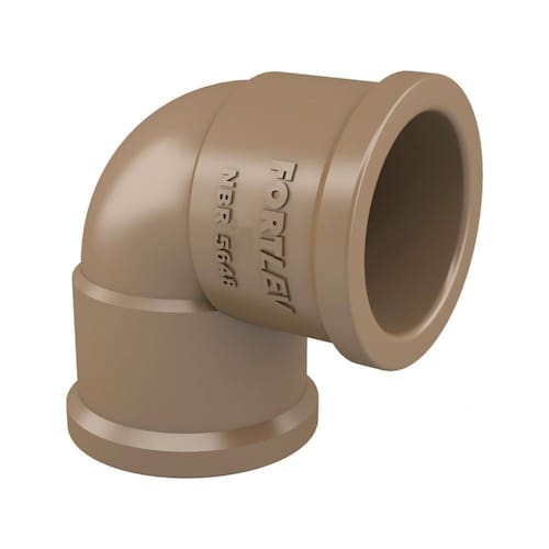 O Joelho 90 Soldável 25 mm Fortlev é composto por PVC na cor marrom, suporta até 7,5 Kgf/cm ou 75 m.c.a. à temperatura de 20C.