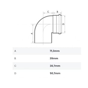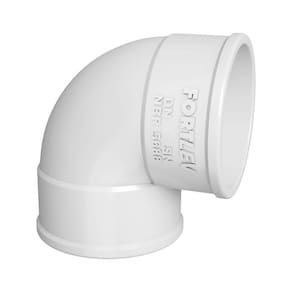 O Joelho 90 50 mm Fortlev é composto por PVC na cor branca e projetado para escoamento em regime não contínuo à temperatura máxima de 45C.