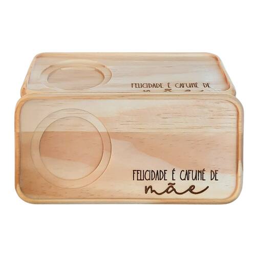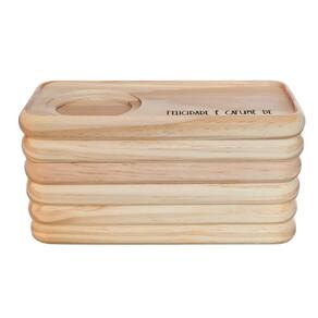 kit Jogo conjunto 2 Pires Retangulares Mãe p/ xícaras de café e chá - Pinus Nossos pires de Madeira pinus para xícaras de café/chá são simplesmente charmosos e muito práticos para organizar as xícaras ao servir um café Ótimo para te ajudar à desfrutar de momentos valorosos e porque não saborosos na companhia da familia e amigos. Acondiciona 6 xícaras de Café e Chá Medidas: (AxLxC) 1,5cm x 9cm x 18cm OBS:Por se tratar de madeira de Pinus natural, pode existir pequenas variações na tonalidade das cores da madeira. Embalagem contêm 2 peças Marca: Antilope Decor Porcelanas