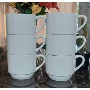 Kit Jogo 6 Xicaras Café/Chá hotel 150ml Empilháveis - Porcelana Branca