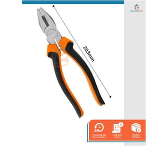 O Alicate de Pressão é ideal para o aperto de porcas e parafusos, na fixação de produtos para colar ou soldar. Sua fácil regulagem através do parafuso no cabo, exerce grande pressão de aperto onde for utilizado. Possuindo um acabamento emborrachado em seu cabo para mais segurança.CARACTERÍSTICAS TÉCNICAS:Material: Cabo emborrachado pvc e aço Medidas: 20,3cm (8”)Marca: StarferRef.: 1373013O Alicate Universal é ideal para prender, puxar, deformar, cortar arames e chapas finas. Seu design com bico universal reto e mola plana auxiliando em reparos de precisão e manuseio de partes e peças. CARACTERÍSTICAS TÉCNICAS:Material: Aço carbono e plástico pvcMedidas: 203mm - 8” Marca: StarferRef.: 1309099O Alicate Mini Corte Frontal é ideal para reparos de precisão e manuseio de pequenas partes e peças, como: elétrica, eletrônica, artesanato e outros. Com mola plana e lâmina de corte em aço carbono com empunhadura em plástico pvc para maior conforto, segurança e menor esforço ao cortar. CARACTERÍSTICAS TÉCNICAS:Material: Aço e borrachaMedidas: 114mm (4.1/2”)Modelo: Mini corte frontalMarca: StarferRef.: 1313185O Alicate Meia Cana é ideal para ser utilizado em aparelhos eletrônicos, aeromodelismo, bijuterias e entre outros. Com mola plana e lâmina de corte em aço carbono com empunhadura em plástico pvc para maior conforto, segurança e menor esforço ao cortar. Indicado para porcas pequenas, em locais delicados e de difícil acesso, torção e corte de fios e cabos, também utilizado para trabalhos artesanais com arames e chapas finas.CARACTERÍSTICAS TÉCNICAS:Material: Aço e borrachaMedidas: 150mm (6”)Marca: StarferRef.: 1309005