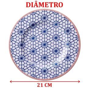 Uso: Resistente a micro-ondas, Resistente a lava-louças; Material: Porcelana; Formato: Redondo; Cores: Branco e Azul; Coleção: Abstratta; Recomendações de uso: