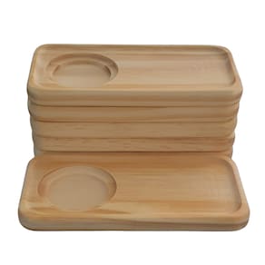 kit Jogo conjunto 4 Pires Retangulares p/ xícaras de café e chá - Pinus Nossos pires de Madeira pinus para xícaras de café/chá são simplesmente charmosos e muito práticos para organizar as xícaras ao servir um café Ótimo para te ajudar à desfrutar de momentos valorosos e porque não saborosos na companhia da familia e amigos. Acondiciona 6 xícaras de Café e Chá OBS:Por se tratar de madeira de Pinus natural, pode existir pequenas variações na tonalidade das cores da madeira. Embalagem contêm 4 peças