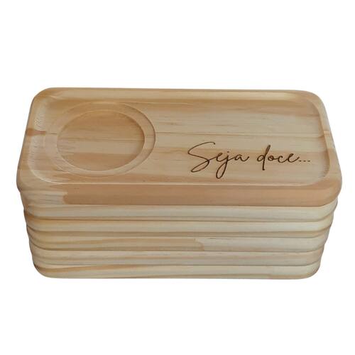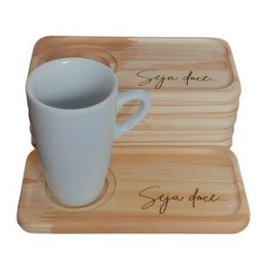 kit Jogo conjunto 4 Pires Retangulares p/ xícaras de café e chá - Pinus Nossos pires de Madeira pinus para xícaras de café/chá são simplesmente charmosos e muito práticos para organizar as xícaras ao servir um café Ótimo para te ajudar à desfrutar de momentos valorosos e porque não saborosos na companhia da familia e amigos. Acondiciona xícaras de Café e Chá Medidas: (AxLxC) 1,5cm x 9cm x 18cm OBS:Por se tratar de madeira de Pinus natural, pode existir pequenas variações na tonalidade das cores da madeira. A Imagem da Xícara é meramestre ilustrativa e não acompanha o produto Embalagem contêm 4 peças Marca: Antilope Decor Porcelanas