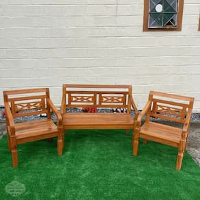 O Conjunto com 1 Banco 2 Poltronas em Madeira de Demolição é para você que procura uma peça bonita e campestre. Altamente resistente e durável, é um item em estilo rústico com entalhos de flores no encosto, proporcionando elegância e um diferencial ao seu ambiente. A peça é produzida em madeira de demolição com acabamento em verniz, dando mais resistência e durabilidade no produto. Deixe sua casa ainda mais bonita sofisticada com o Conjunto com 1 Banco e 2 Poltronas da Sudeste Rústico.