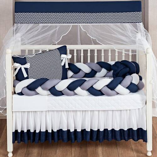 Kit jogo de berço americano trançado 11pçs com edredom e saia Cor: marinho Kit jogo de berço americano trançado fofura para bebê menino e menina 11 peças com edredom e saia