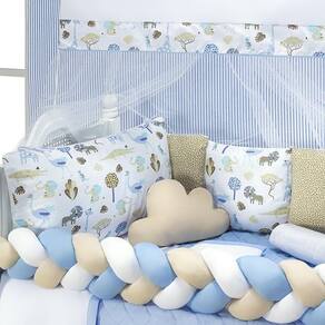 o kit berço trança é um enxoval exclusivo, com peças confeccionadas em tecido misto trazendo o melhor custo benefício do mercado e essenciais para o enxoval do bebê. O destaque desse conjunto completo é o protetor trança, com design inspirado no estilo escandinavo ele também pode ser utilizado até quando o recém-nascido estiver crescidinho, como uma almofada aconchegante. Dica: não é recomendável lavar os protetores na maquina