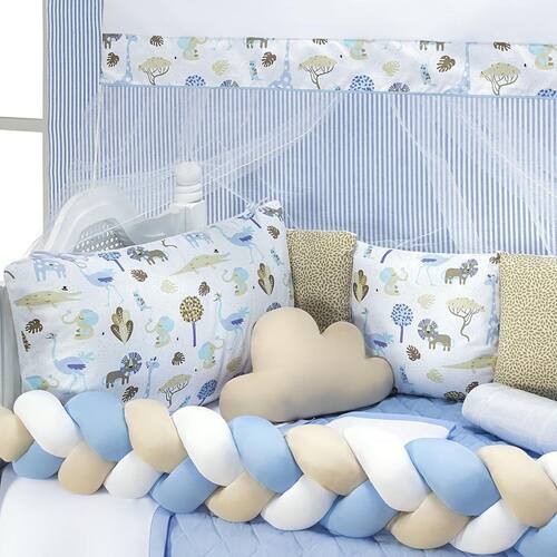 Kit jogo de berço leãozinho estampado kit americano de berço cor: azul kit jogo de berço leãozinho estampado 13 peças kit americano de berço safari para bebe luxuoso