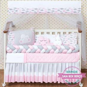 Kit jogo de berço trançado sonho encantado 12 pecas completo Cor: rosa Kit jogo de berço trançado sonho encantado 12 pecas luxo kit americano para bebe completo luxuoso