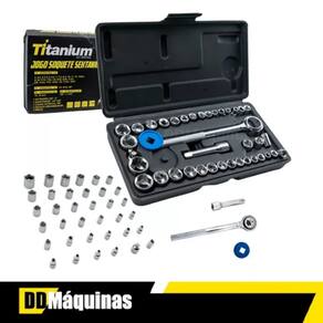 Jogo de Chave Soquete Catraca Reversível Titanium 40 peças , Jogo de Chave Sextavada para diversos uso, profissional e doméstico, facilitando o trabalho de aperto e soltura de parafusos e porcas em suas necessidades .