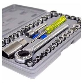 Kit Jogo De Chaves Catraca Pito 40 Peças Sextavado O jogo de chave e cachimbos é composto por 40 itens de excelente qualidade. Melhor custo benefício do mercado. O kit é portátil, leve e de qualidade, sem falar na maleta que é sensacional Esta combinação de chaves muito prática para reparos, pois atende as mais diversas situções.