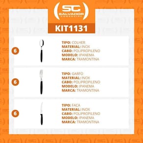 Cor: Preto | Tipo de Talher: Conjunto de Utensílios