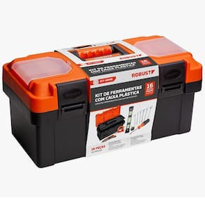 Kit de Ferramentas com 16 peças e Caixa Plástica Robust O Kit de Ferramentas com 16 peças da Robust é ideal para entusiastas de DIY, para manutenção doméstica e também profissionais liberais. DIY é a sigla do inglês Do-It-Yourself, que quer dizer Faça Você Mesmo.