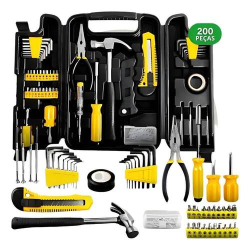 Kit Jogo De Ferramentas Com Maleta 200 Peças Perfeita para quem busca versatilidade, praticidade e organização em um único kit. Ideal para ou doméstico, ela inclui uma ampla variedade de ferramentas como chaves, bits, alicates, martelo, estilete e muito mais, atendendo desde pequenos reparos até manutenções mais complexas. Com maleta resistente e bem organizada, facilita o e o armazenamento, além de contar com ferramentas fabricadas com materiais de alta qualidade, garantindo durabilidade e desempenho no dia a dia. Seja você mecânico, eletricista, instalador ou entusiasta do faça você mesmo, Itens Inclusos: - 01 LÂMINA DE SERRA 10 X 24 DENTES - 01 CHAVE COM ENCAIXE SEXTAVADO 1/4 - 08 CHAVES ALLEN (POLEGADAS) - 08 CHAVES ALLEN (MILÍMETROS) - 06 CHAVES DE PRECISÃO - 01 FITA ISOLANTE - 01 ARCO DE SERRA - 01 CHAVE TESTE - 01 ESTILETE - 01 MARTELO - 01 ALICATE DE BICO RETO - 01 CHAVE PHILLIPS COTOCO - 20 BITS - 149 FIXADORES - 01 MALETA