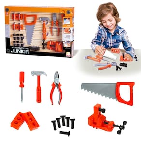 • Com esse kit de ferramentas Junior, sua brincadeira vai ficar ainda mais divertida! Você pode usar sua imaginação e fazer com que a sua brincadeira fique parecidas com o trabalho do Papai.