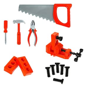 • Um super kit com morsa, ferramentas, parafusos e acessórios para as crianças brincar e aprender.