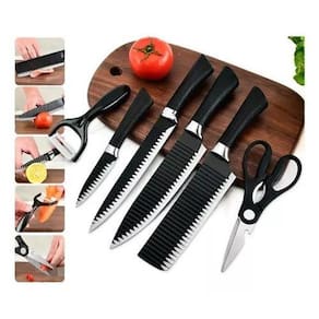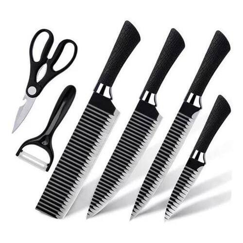 Itens inclusos: 1 Cutelo de 7 17.8cm 1 Faca de Carne 8 20cm 1 Faca para Pão 8 20cm 1 Faca para vegetais 3 9cm 1 tesoura de cozinha 13cm 1 descascador de legumes 15cm Marca: Não Informado Ean: 7895348812261
