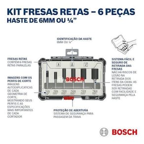 Ficou alguma dúvida Faça sua pergunta, ficaremos satisfeitos em lhe atender bem. Emitimos . Qualidade, preço Justo e atendimento Perfeito. O Jogo de fresas retas oferece cortes finos para uma variedade de aplicações, sendo a escolha perfeita para marceneiros, carpinteiros, instaladores de interiores e trabalhadores da construção civil. Os gumes de corte em carbeto de tungstênio das fresas garantem uma vida útil longa, além disso, são fabricadas de acordo com a norma de segurança DIN EN-847 da Europa. As fresas destinam-se a utilização em madeira macia, madeira dura e compósitos de madeira. O Jogo de 6 fresas retas contém uma seleção das fresas mais utilizadas para ranhurar e rebater. Seu estojo exclusivo Bosch é muito robusto e armazenas as fresas de maneira segura e firme, ao mesmo tempo que apresenta um design especial Easy-Pick permite que as fresas sejam removidas com rapidez e segurança pelo encaixe, oferecendo a proteção perfeita para utilização, armazenamento e transporte seguros do conteúdo. Ítens inclusos: - 1 Fresa reta 1/4, 6 mm x comprimento útil 20 mm, comprimento total 54 mm, - 1 Fresa reta 1/4, 8 mm x comprimento útil 20 mm, comprimento total 50 mm, - 1 Fresa reta 1/4, 10 mm x comprimento útil 30 mm, comprimento total 60 mm, - 1 Fresa reta 1/4, 12 mm x comprimento útil 30 mm, comprimento total 60 mm, - 1 Fresa reta 1/4, 16 mm x comprimento útil 30 mm, comprimento total 60 mm, - 1 Fresa reta 1/4, 20 mm x comprimento útil 30 mm, comprimento total 60 mm. Cód. Bosch: 2607017467 Ficou alguma dúvida Faça sua pergunta, ficaremos satisfeitos em lhe atender bem. Emitimos . Qualidade, preço Justo e atendimento Perfeito.