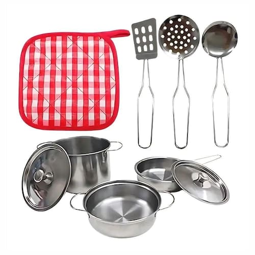 ESPECIFICAÇÕES: Marca: Dony Toys Modelo: Mini Panelinhas - Brinquedo Faz de Conta Material: Inox Cor: Cinza Quantidade de Peças: 9 Peças Idade Recomendada: A partir dos 3 Anos