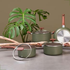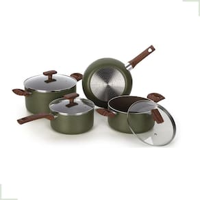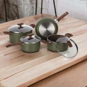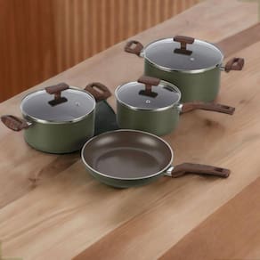 Kit Jogo De Panelas Fogão Indução 4 Peças Antiaderente Alumínio Cor: Verde-Musgo