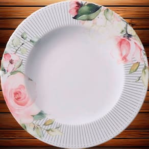 A coleção Ornatta foi inspirada nas rosas clássicas, pintadas em aquarela, que são charmosas e elegantes. A decoração desse conjunto é atemporal e sofisticada, com buquês de flores que possuem movimento e naturalidade. O detalhe das bordas dá uma característica única ao nosso desenho.