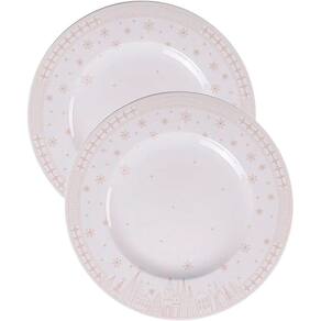 Kit Jogo Pratos Rasos Jantar 6Pçs 6 Pessoas Natal Noel 28cm -