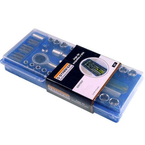 KIT COM JOGO DE SOQUETES PONTAS BITS CATRACA E ADAPTADOR 3/8 COM 40 PEÇAS + JOGO DE CHAVE COMBINADA STARFER 6 Á 17MM COM 8 PEÇAS.