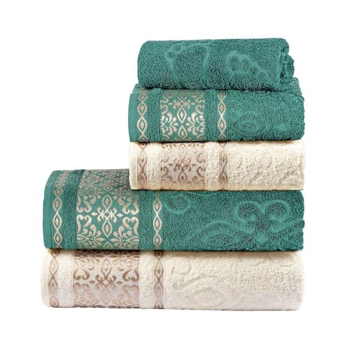 Kit jogo toalha de banho e rosto gigante 5 pecas 100%algodao Cor: verde com perola Kit jogo toalhas de banho e rosto luxuosa gigante jogo de banho essence felpuda 05 pecas 100%algodao super macia