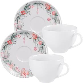 Kit 4 Xícaras 250ml Com Pires 15cm De Diâmetro Noite Feliz;