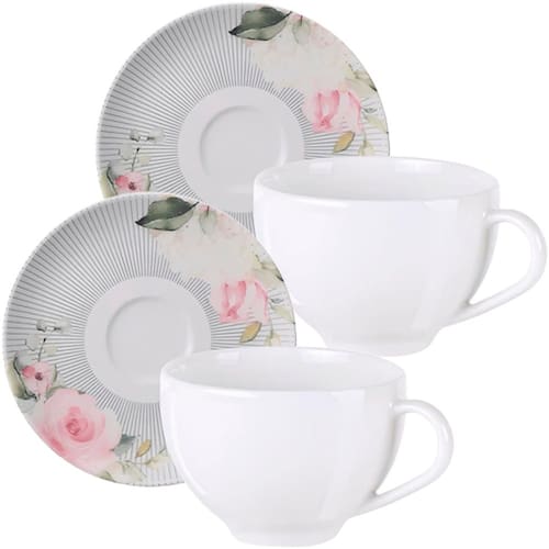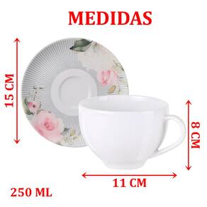 Kit 8 Xícara 250ml Com Pires 15cm De Diâmetro Ornatta;