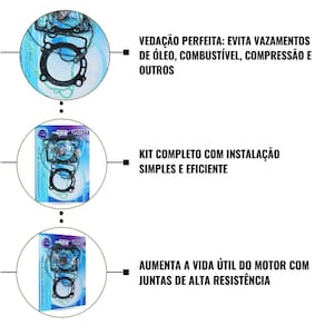 Produzido com juntas de aço multicamada e fibras sintéticas, o kit oferece vedação perfeita em todas as conexões do motor, impedindo que gases, óleo, combustível ou líquidos de refrigeração escapem.