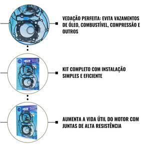 Produzido com juntas de aço multicamada e fibras sintéticas, o kit oferece vedação perfeita em todas as conexões do motor, impedindo que gases, óleo, combustível ou líquidos de refrigeração escapem.