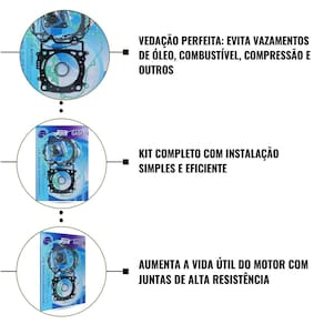 Produzido com juntas de aço multicamada e fibras sintéticas, o kit oferece vedação perfeita em todas as conexões do motor, impedindo que gases, óleo, combustível ou líquidos de refrigeração escapem.