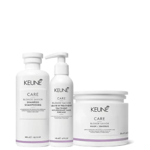 Kit Keune Blonde Savior - Leave-in 140ml: creme sem enxágue com Ácido glicólico e Creatina, trata os cabelos devolvendo força e reparação.