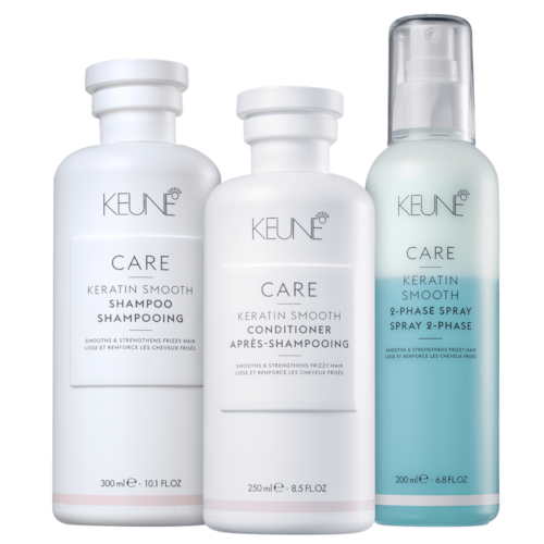 O Kit Keune Care Keratin Smooth Super são produtos desenvolvidos especialmente para repor as proteínas e os nutrientes da fibra capilar, perdidos ao longo do tempo em processos químicos ou agressões externas.