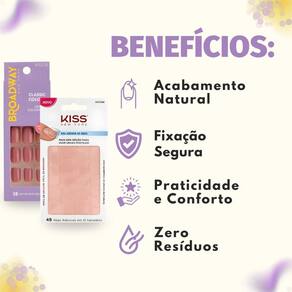 Kit Kiss New York: Unhas Postiças Quadrado Curto Smoothie e Abas Adesivas Unhas