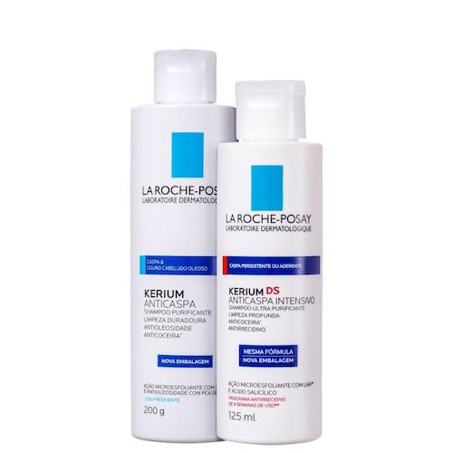 Kit com shampoos para cabelos com caspa persistente ou aderente. La Roche-Posay Kerium Ds Super ajuda a manter a limpeza e bem-estar do couro cabeludo diariamente, onde controla a oleosidade e a caspa na região.