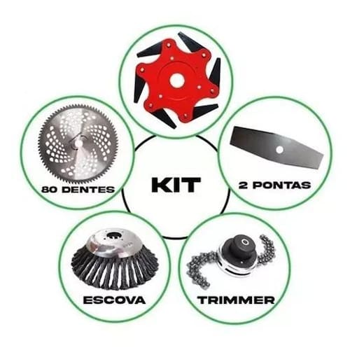 Kit lâminas e discos de corte para roçadeira stihl universal 4 em 1 - 1 trimmer na cor preto ou laranja - 1 disco 80 dentes - 1 lâmina 2 pontas ------------------------------------------------- Projetadas para oferecer qualidade, durabilidade e precisão no corte, facilitando o trabalho a ser executado.
