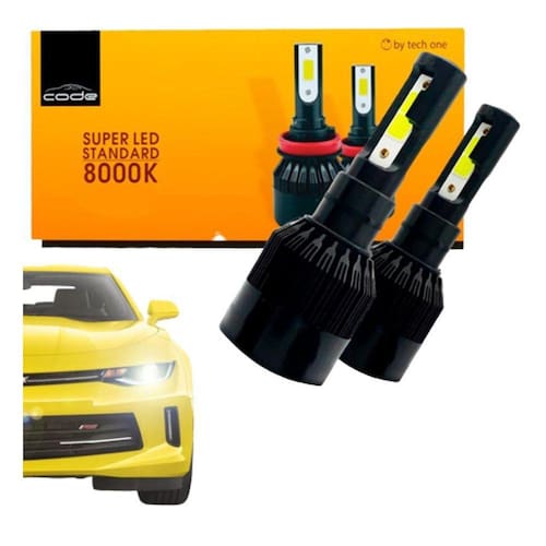 Kit Lâmpada Automotiva Led H8/H9 E H11 8000K- Tech One CodeCaracterísticas- temperatura de cor de 8000k- chip de led modelo flip cob- instalação rápida e sem adaptações- maior durabilidade e resistência- efeito xênon- maior visibilidade- fio super resistente coberto por malha de nylon- tipo: super led- 8000k kelvin extremamente branca- fluxo luminoso: 12800 lumens 6400 cada lado - vida útil +/- 30.000 horas- chipe de led modelo flip cob mais resistente- voltagem: 12v e 24v- potência: 37w por bulbo- novo cooler- não esquenta como as lâmpadas tradicionais- mais segurança e melhor performance- componentes ecologicamente corretos- economia de até 60% de energia- temp. De operação: - 40°c à 95°c- proporciona melhora na visualização de placas e sinalizações- medidas: 8,0 x 4,0 cmItens inclusos- 01 par de lâmpada led 8000k 12800 lumens techone code super led Marca: Tech One Code