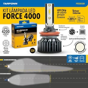 O kit lâmpada led force 4000 premium chegou para dar um up na sua iluminação automotiva com qualidade e modernidade. Este produto da linha premium, tem todo o seu acabamento em alumínio de aviação e possui a moderna tecnologia led csp, que aumenta a intensidade luminosa e diminui possíveis pontos de falha. O kit é compacto, de fácil instalação e 20% menor que as demais lâmpadas.