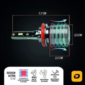 Kit lâmpada led t2 ultra slim h7 30w 3000lm 6000k tarponn O kit lâmpada led tarponn t2 ultra slim, da linha cyber tarponn, é compacto, versátil e ideal para seu carro. Com acabamento em alumínio de aviação e tecnologia de led coreano csp, oferece alta intensidade luminosa. Resistente a vibrações e calor, seu design ultra slim e suporte removível garantem fácil instalação. Possui dissipador em alumínio para maior durabilidade, iluminação branca fria 6000k e fluxo luminoso de 3000 lumens, sendo aplicável para farol alto e baixo. Características Design ultra slim Corpo em alumínio de aviação 6000k Iluminação branca fria Tecnologia led csp Base de dissipação em alumínio de aviação Encaixe em alumínio removível Ficha técnica Temperatura de cor: 6000k Encaixe: h7 Tensão: 12v Equivalência: 30w Tipo de led: csp Linha: cyber Grau de proteção de água: ip65 Fluxo luminoso: 3000 lumens Linha de corte +segurança Temperatura de trabalho: -40+80c Conteúdo da embalagem 1 par lâmpada led t2 h7 Mega gt - especialista em acessórios automotivos e utilidades na mega gt, somos especialistas em acessórios automotivos e utilidades. Buscamos sempre oferecer a melhor opção com preço justo em todas as suas compras. Todos os produtos: Enviamos em até 24 horas 3 meses de Dúvidas frequentes: Possui sim, os nossos produtos possuem de 3 meses. A sua satisfação é a nossa prioridade. Imagens meramente ilustrativas Marca: Não Informado