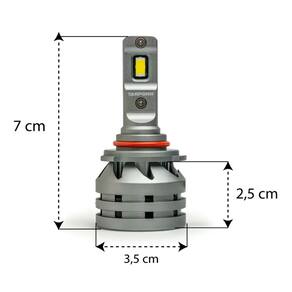 Especificações Cor: Cinza Voltagem: 12V Tipo de LED: CSP 3570 (última geração coreana) Temperatura de cor: 6000 K (branco frio) Potência: 50 W por peça (100 W o par) Fluxo luminoso: 5.500 lumens por peça Encaixe: HB3 / HB4 Material do corpo: Alumínio de aviação 6063 Refrigeração: sistema duplo (dissipador + cooler) Driver: Canbus externo (corrige códigos de erro em painéis) Grau de proteção: IP65 (resistente à água e poeira) Faixa de temperatura de trabalho: –40 °C a +80 °C Redução de tamanho: peça ~20% menor que modelos convencionais Dimensões: 7x3x3 cm (AxLxC)