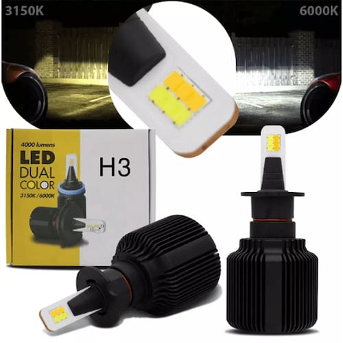 Par Lâmpadas Automotivas Super LED Dual Color H3 3150K 6000K 16W 4000 Lúmens Luz Amarela e Luz Branca Efeito Xenon 12V
