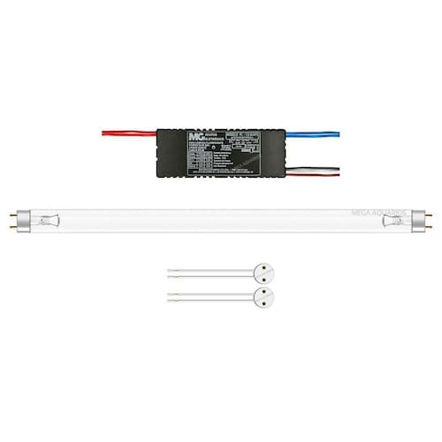 Kit lâmpada uv uv-c 25w tubular t8 germicida para esterilização de ambientes e água + reator próprio para lâmpada uv + par de soquetesLeia atentamente o anúncio antes da compraNossa lâmpada tubular germicida uv foi desenvolvida com tecnologia de ponta para garantir a mais alta qualidade e eficiência em desinfecção, é a escolha ideal para garantir um ambiente livre de germes e uma água cristalina para seu aquário ou lago.Principais características da lâmpada uv-c:Eficácia comprovada na eliminação de bactérias, vírus e outros micro-organismos nocivosA lâmpada uv-c germicida é uma poderosa ferramenta para manter ambientes saudáveisDeixa a água cristalina do lago ou aquário Pode ficar ligada 24h por diaTubular / linearTubo de quartzo transparente4 pinos, dois em cada pontaNecessita de equipamento próprio para desinfecção de ambientes ou um filtro uv para esterilização de águaNunca manuseie a lâmpada com ela ligada, não exponha olhos e pele à radiação da lâmpada. Aplicação - para que serve a lâmpada ultravioleta - uv-c germicida:Manter a água do aquário ou lago cristalina e livre de micro-organismos que possam prejudicar a saúde dos peixes e plantas.Tratamento de água e esgoto.Desinfecção de ambientes como hospitais, farmácias, restaurantes, academias, transporte público, indústrias alimentícias e outros locais que necessitam manter o ambiente seguro e livre de patógenos.Especificações técnicas lâmpada uv-c:Marca: mega aquáriosModelo: lâmpada uv uv-c germicida fluorescente ultravioleta 25wRadiação: emite radiação uv de onda com um pico de 253.7 nm uv-c Potência: 25wVoltagem: 110v / 220v pode ser ligada nas duas voltagens conforme ligação do reatorTamanho: 45cm pino a pinoDiâmetro: t8Soquete: g13Pinos: 4Formato: tubularMédia de vida útil: 8.000hPeso: 65g.Especificações e características soquete para lâmpada t8: Funciona com todos os modelos de lâmpadas de diâmetro t8, t10, t12 e lâmpadas de led desse diâmetroMarca: redyModelo: soquete base g13 tomadinha para lâmpada t8Base: g13Material: corpo em plástico pp polipropileno e contatos em latãoCorrente: 2aVoltagem: 110v ou 220v conforme ligação do reatorCor: brancoTamanho: 2,2cm de diâmetroRabicho: 12cm fio flexível 0,5mmTemperatura máxima de trabalho: 70cPeso unitário: 6g.Especificações técnicas reator para lâmpada uv:Para lâmpada de 4 pinos fluorescentePartida instantânea30% mais econômico em relação aos modelos eletromagnéticosFabricante: margiriusModelo: pg - 1x26Voltagem: pode ser ligado em 110v ou 220vDimensões: 11 x 3,5 x 4,3cm larg x alt x profundidadePeso: 114gCorrente: 0,228a 127v / 0,192a 220v Potência: 27w 127v / 26w 220v Temperatura máxima de trabalho: 75c.ImportanteJamais exponha os olhos ou a pele à radiação emitida pela lâmpada uv ultravioleta, sob risco de danos gravíssimos irreversíveis aos olhos além de queimaduras na pele. A utilização de equipamentos de segurança é obrigatória.Obrigado pela visita e boas comprasAtençãoNossas imagens e textos são registrados e com direito de uso autoral controlado e reservado a essa loja e as lojas parceiras devidamente autorizadas em contrato. Marca: Mega Aquarios