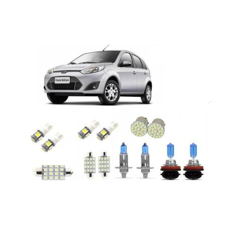 Kit lâmpadas led ford fiesta rocam hatch sedan + farol As lâmpadas super brancas tech one 8500k deixam o carro com um visual muito mais bonito e moderno, eliminando a cor amarelada das lâmpadas comuns. Sem contar com a excelente melhora na iluminação, gerando maior conforto e visibilidade do percurso noturno. A lâmpada utiliza as conexões do seu carro sem precisar de adaptações ou relês. Brilho 30% maior que lâmpadas comuns. Homologada pelo inmetro. Dados técnicos: Cor de emissão: branca efeito esportivo Potencia: 60/55w Voltagem: 12v Temperatura da cor: 8500k Itens inclusos: - 2 lâmpadas h1 farol alto e baixo - 2 lâmpadas h11 farol de milha - 2 t10 5 leds farolete - 2 t10 5 leds teto leitura - 2 1156 1 polo 22 leds ré - 2 torpedos 39mm placa - 1 torpedo 39 mm teto dianteiro Marca: Não Informado