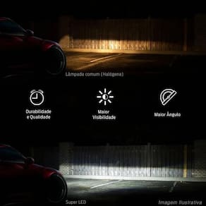 com durabilidade e economia muito superiores aos outros tipos de lâmpadas, as super led são uma excelente escolha para quem deseja ter um visual diferenciado no que tange a iluminação veicular, pois proporcionam o efeito xênon sem necessidade de reatores e sem a possibilidade de danificar o farol do seu carro. Além da tecnologia led, que possui grande durabilidade, essas lâmpadas possuem resistência, a vibrações, evitando dores de cabeça com trocas de lâmpadas. Este kit de lâmpadas possui tonalidade 6000k, baixo consumo, pode ser utilizado em carros de 12v com garantia de vida útil prolongada. A tonalidade branca levemente azulada é eficiente para melhorar a visualização de placas e sinalizações