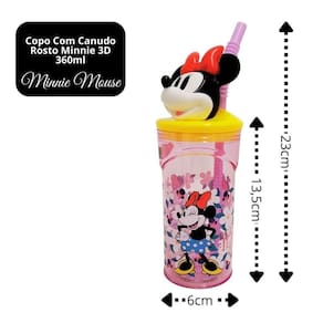 -01 unidade Copo 3D Acrílico Minnie 360ml com canudo e Rosto Minnie Látex