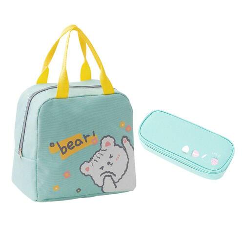 O conjunto de lancheira e estojo é perfeito para seu filho! Esta lancheira pode ser usada por crianças de todas as idades, grandes ou pequenas. Você pode armazenar lanches, frutas, garrafas, e muito mais! E o estojo tem um bolso com zíper exclusivo com organizador de canetas e um compartimento de rendas para guardar os pertences de seu filho.