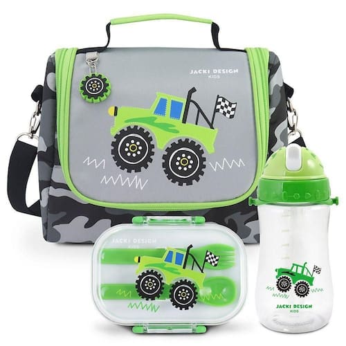 Kit Lancheira Térmica, Pote Marmita 400ml e Garrafa 460ml Infantil PICCOLINO Verde -